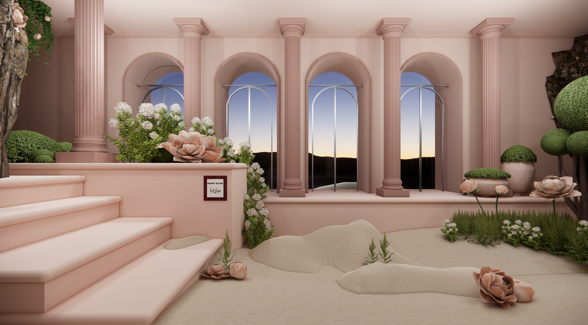 This project profound inspiration from the breathtaking landscape of Wadi Rum in Jordan embracing it’s geological patterns and the interplay of light and shadow, the design captures the raw textures and colors of the desert while giving a way to a sensory immersion where blooms defy the odds and emerge in splendor.