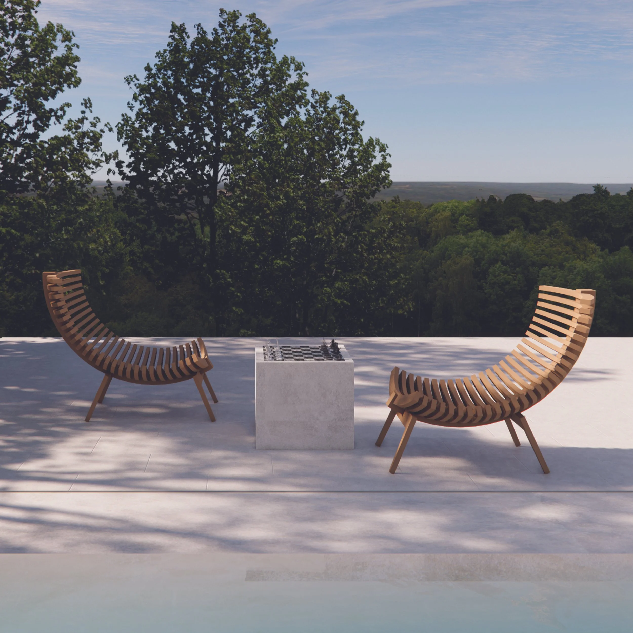 “SUMMER BREEZE” encapsulates the essence of relaxed luxury while fostering joyful interaction through its seamless blend of different geometrical forms