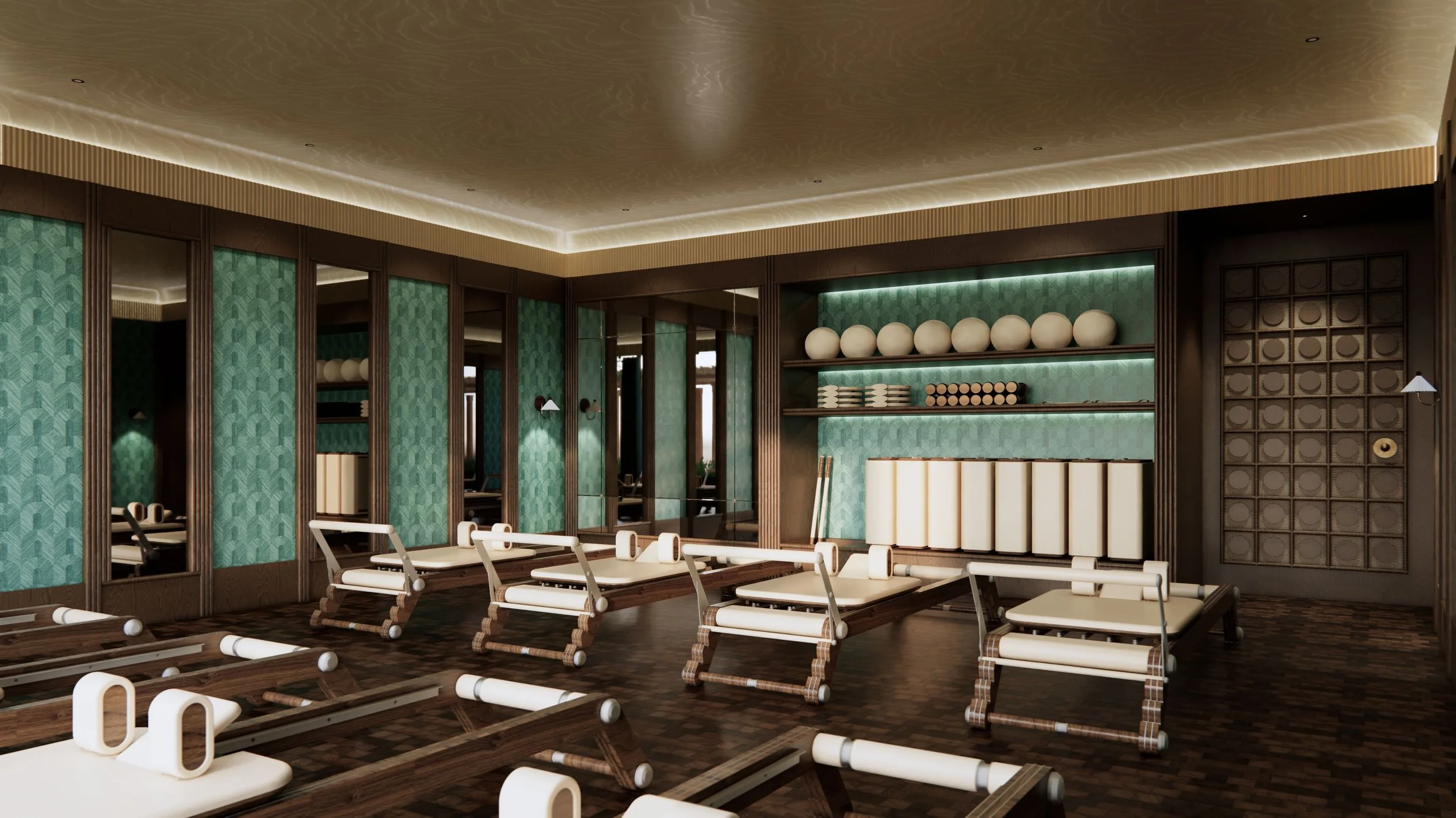 A carefully curated aesthetic merges statement materials with a dynamic interplay of color. Rich, vibrant hues are balanced with muted, earthy tones, evoking both strength and sophistication. Every material and texture is meticulously selected to create an immersive atmosphere, transforming the studio into more than just a place for exercise, it becomes a lifestyle destination that deeply resonates with its visitors.